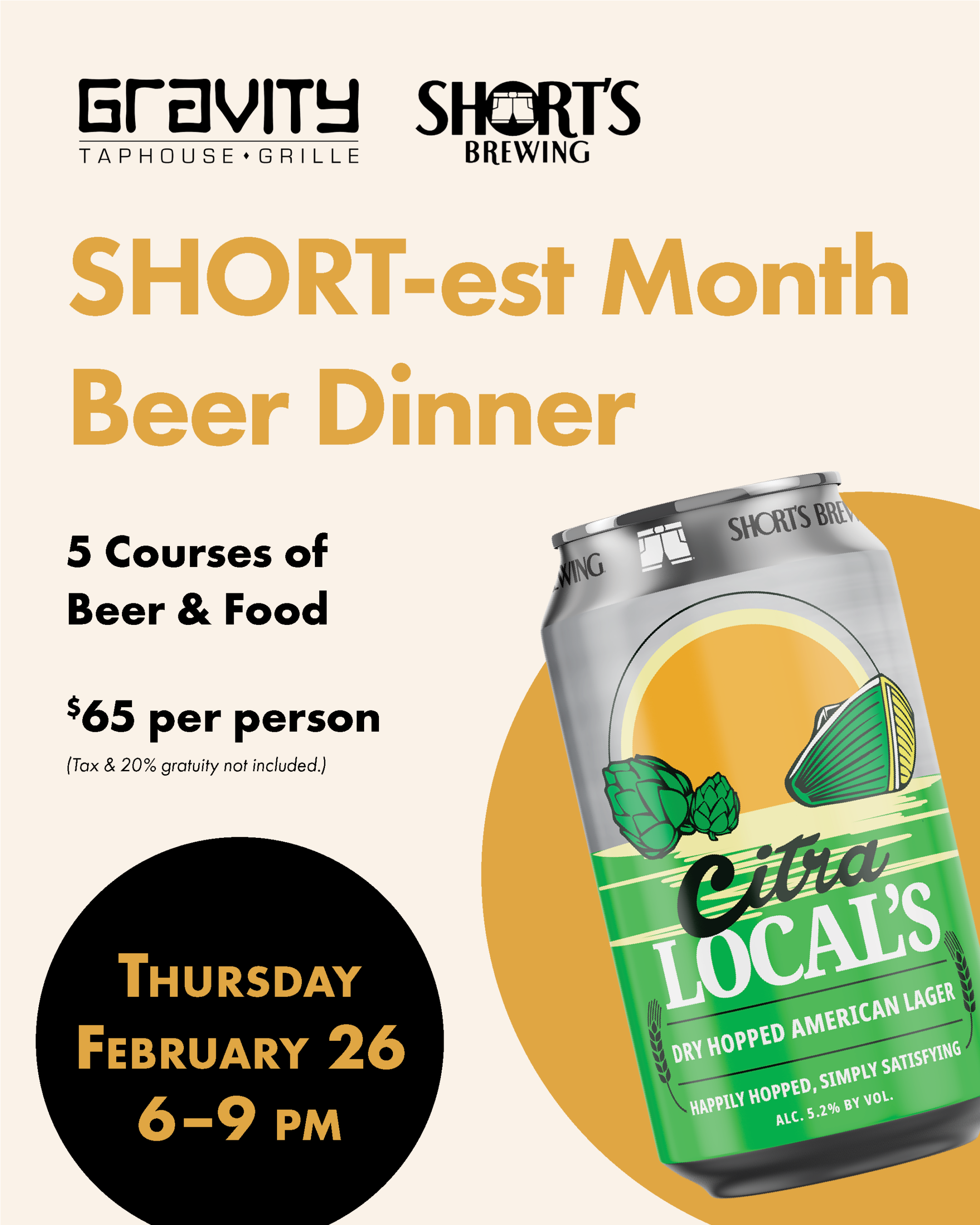 Joe Short Winter Beerfest Beer Dinner @ Gravity Taphouse, Grand Rapids!